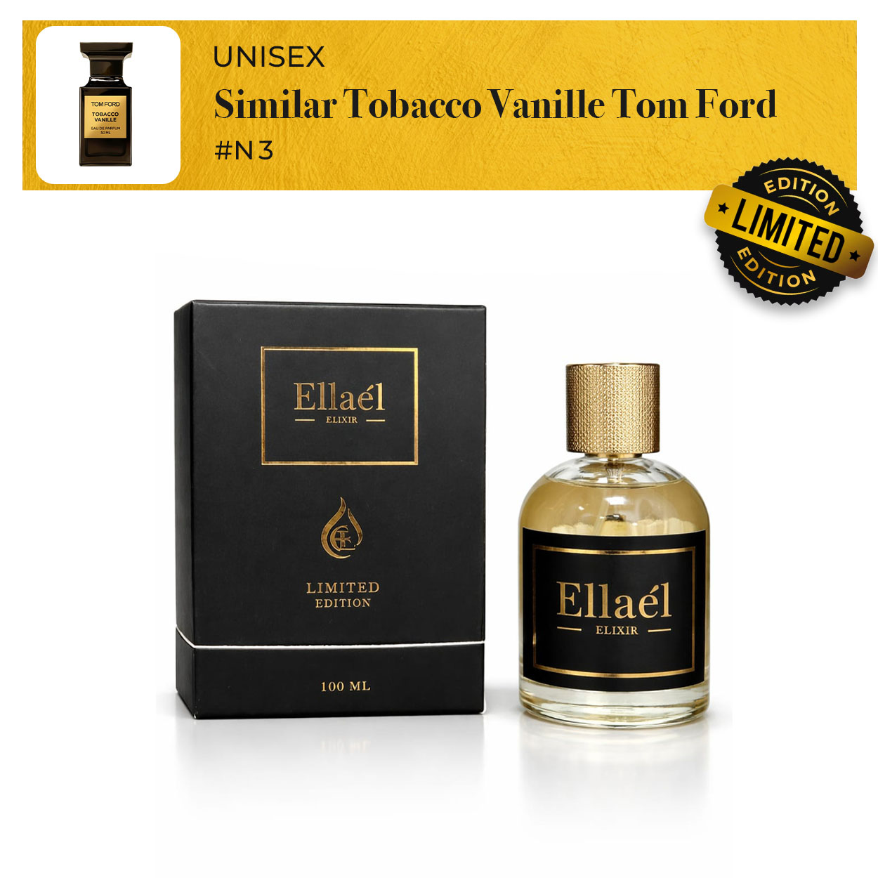 Tobacco Vanille de Tom Ford es una fragancia de la familia olfativa Oriental Especiada para Hombres y Mujeres. Tobacco Vanille se lanzó en 2007. La Nariz detrás de esta fragrancia es Olivier Gillotin. Las Notas de Salida son hojas de tabaco y notas especiadas; las Notas de Corazón son vainilla, cacao, haba tonka y flor del tabaco; las Notas de Fondo son frutas secas y notas amaderadas.
